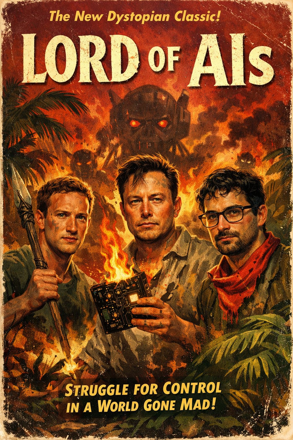 “A group of prepubescent British boys who are stranded on an uninhabited island and their disastrous attempts to govern themselves that lead to a descent into savagery. The novel’s themes include morality, leadership, and the tension between civility and chaos.” That’s the plot of Lord of the Flies, but it could just as easily be the coming plot of the race toward AI dominance. Like the kids stranded on the fictional island, in the Lord of the AIs, the rules of the new BYOG (Bring Your Own Guardrails) society are being set by insiders. Anthropic is the major AI player known for being the most worried about the “civilizational concerns” associated with its tech. Maybe that’s just a branding strategy, or maybe they’re just being compared to the likes of Zuck and Musk. But let’s give them the benefit of the doubt and assume they really are the most concerned of the AI giants. “When Anthropic launched Claude, in 2023, the bot’s distinguishing feature was a ‘Constitution’ that the model was trained on detailing how it should behave; last week, Anthropic revamped the document into a 22,000-word treatise on how to make Claude a moral and sincere actor. Claude, the constitution’s authors write, has the ability to foster emotional dependence, design bioweapons, and manipulate its users, so it’s Anthropic’s responsibility to instill upright character in Claude to avoid these outcomes.” But, ultimately, the race is on. And the rules of the race are being made by its participants, not by governments, and certainly not by end users. Ultimately, those rules may be made by the very technologies the absence of outside rules enabled. Matteo Wong in The Atlantic (Gift Article): Anthropic Is at War With Itself. “The AI company shouting about AI’s dangers can’t quite bring itself to slow down.” (And that’s the point. This is all about self-regulation. They’re the only ones who currently have the power to slow themselves down.)
